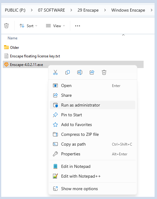 Navigate to P:\07 SOFTWARE\29 Enscape\Windows Enscape
