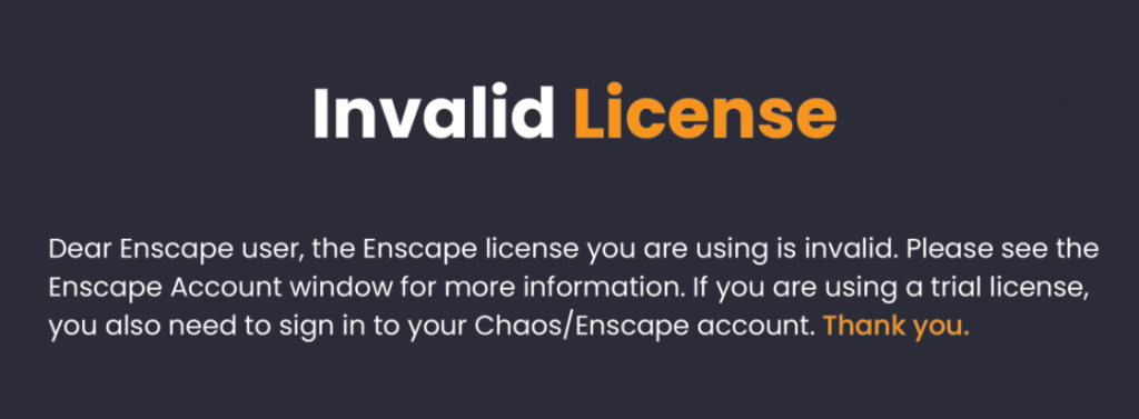 If the activation is successful, you will see “Thank you for using Enscape!” and close the window.