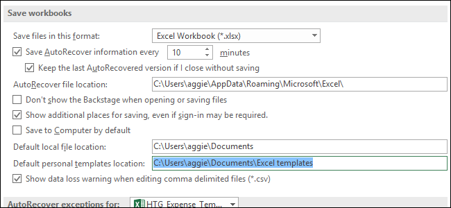 On the right, you’ll see a “Default personal templates location” box where you can type a path to a custom save location for templates. There is a “Browse” button, so type the full path to the folder you want to use or copy and paste the location from a File Explorer address bar.