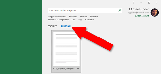 Suppose you save your templates in the official custom templates folder Office uses (whether that’s the default Documents\Custom Office Templates location or you configured a new save location in Settings). In that case, those templates become available on the Office splash screen. That screen shows featured templates by default, but you can see templates you’ve saved by clicking the “Personal” link.