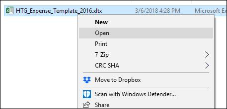 You can also create a new file based on a template by just double-clicking the template in File Explorer. The default action on template files is to create a new file rather than open the template file, so double-clicking a template immediately opens a new Excel file for you.